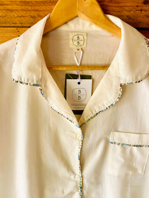 Cream & Blue Floral Trim Short Sleeve Short Set![]()  - Regular price